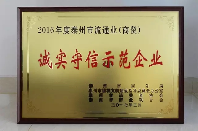 民慧榮膺泰州市流通業(yè)(商貿(mào))“誠(chéng)實(shí)守信示范企業(yè)”