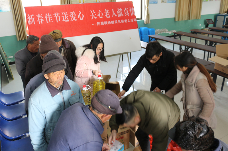 臨近年關,2月7日上午,罡楊鎮(zhèn)西馮村五保、低保老人們齊聚村部,參加民慧鋼鐵舉辦的“新春佳節(jié)送愛心,關心老人獻真情”活動,老人們拿著新年大禮包,臉上樂開了花,這已經(jīng)是該活動舉辦的第九個年頭。