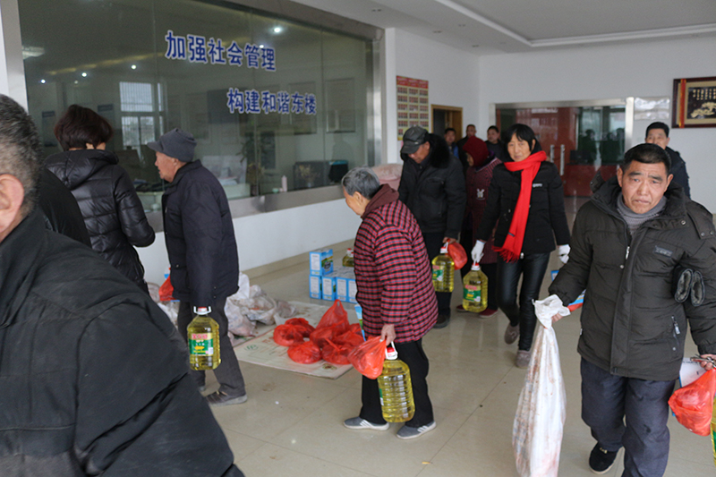 我公司員工在給老人們發(fā)放年貨