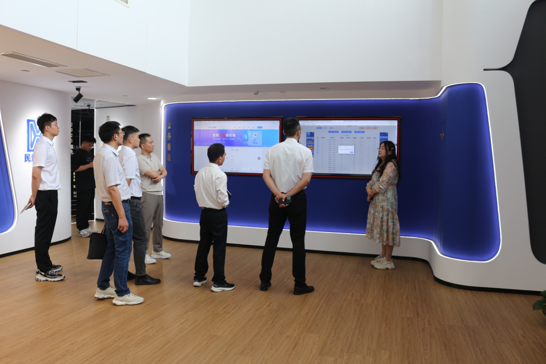 揚(yáng)州港務(wù)集團(tuán)有限公司集團(tuán)領(lǐng)導(dǎo)一行,首先來到了我司的展示大廳,步入展廳,參訪領(lǐng)導(dǎo)了解到我司依托金屬材料領(lǐng)域十余年的服務(wù)和開拓,立足行業(yè)屬性和用戶需求,從上游鋼廠到終端用戶,從研發(fā)制造到售后服務(wù),電子商務(wù)、工業(yè)互聯(lián)網(wǎng)、倉儲物流、數(shù)智服務(wù)四大板塊聯(lián)動,實現(xiàn)了鋼鐵原材料供應(yīng)領(lǐng)域全景式布局、全產(chǎn)業(yè)鏈覆蓋。