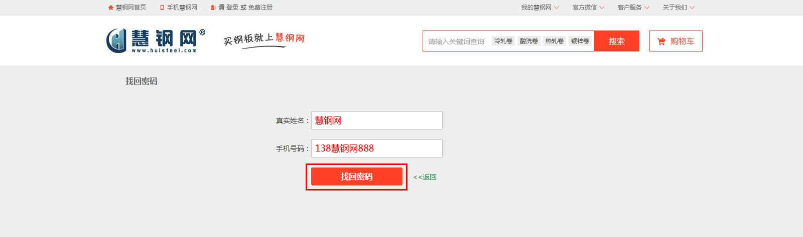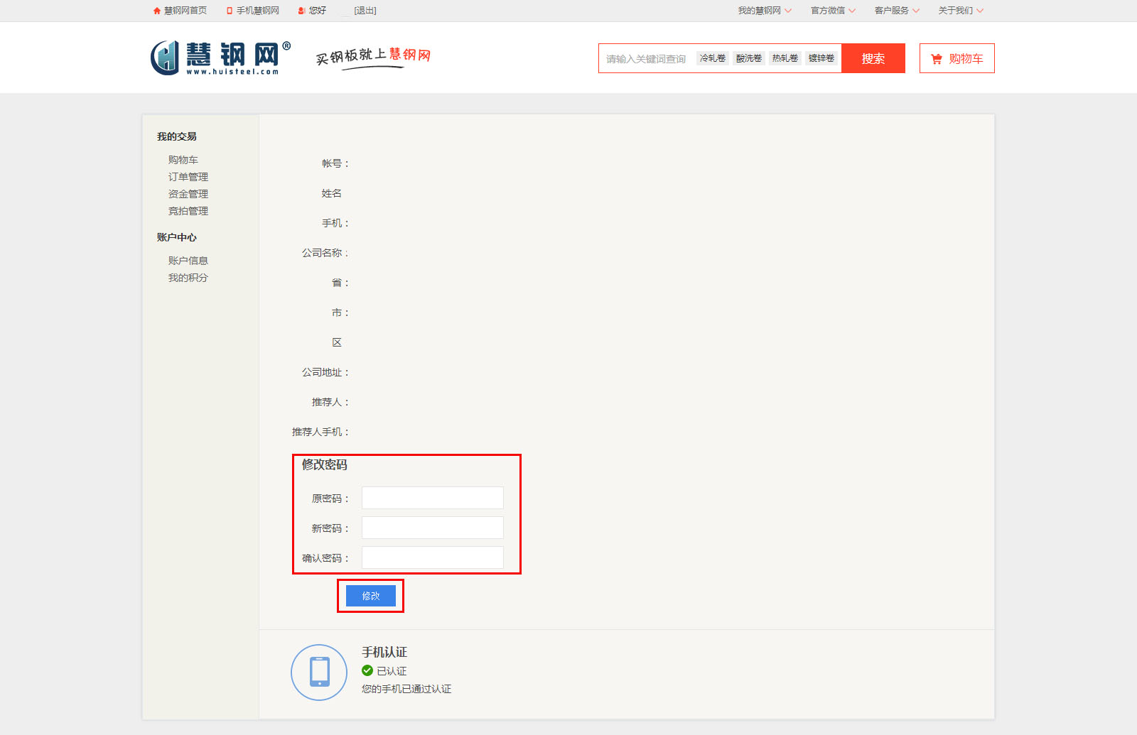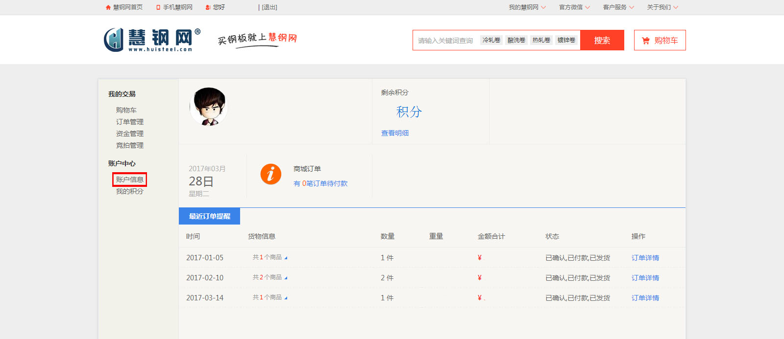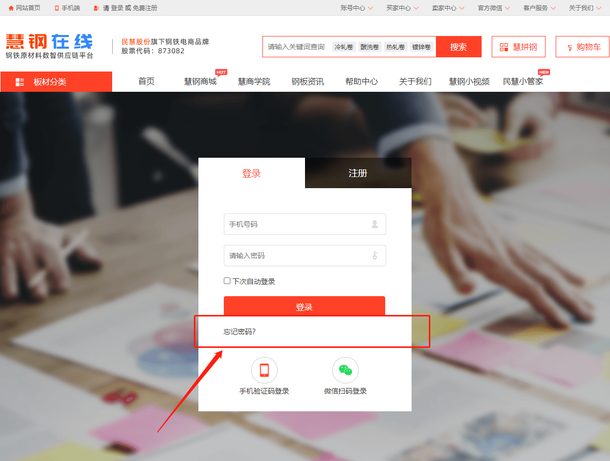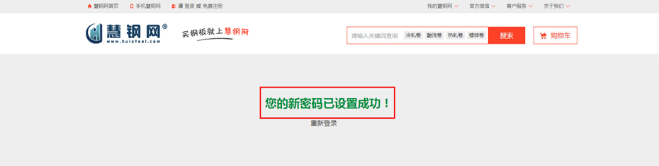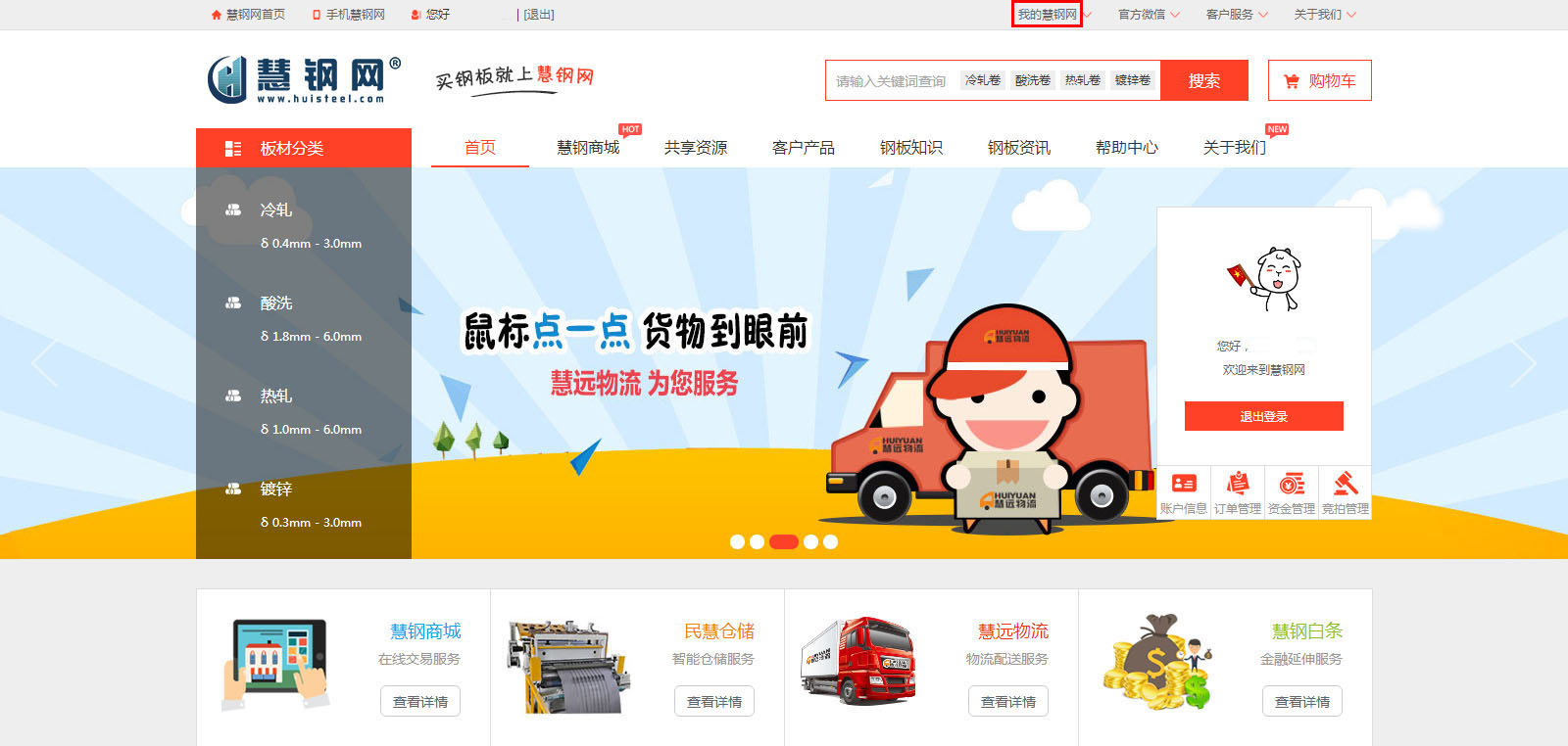 (6)登錄到慧鋼網(wǎng)首頁,點擊右上角“我的慧鋼網(wǎng)”