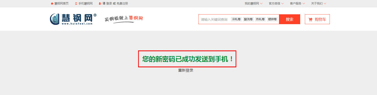 (5)網(wǎng)站將新的密碼發(fā)送到注冊的手機上,重新登錄