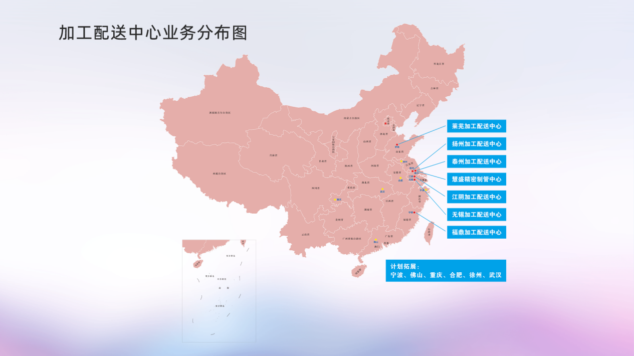 倉儲配送:民慧倉儲中心,以慧鋼在線七大倉儲加工配送中心構(gòu)建起全面且高效的倉儲物流網(wǎng)絡(luò)。泰州倉儲配送中心位于中國物流園內(nèi),距火車貨運(yùn)站 500 米、啟揚(yáng)高速泰州西出口 2 公里、水運(yùn)碼頭 1 公里,獨(dú)特的交通便利性使其成為貨物集散轉(zhuǎn)運(yùn)的核心?;凼⒕苤乒苤行脑谔┲菔泻A陞^(qū)罡楊鎮(zhèn),專注精密制管,以精湛工藝和高效生產(chǎn)與倉儲配送互補(bǔ),完善產(chǎn)業(yè)生態(tài)。濟(jì)南倉儲加工配送中心地處濟(jì)南市鋼城區(qū)鋼廠環(huán)繞之處,資源豐富且有先進(jìn)剪切設(shè)備,可精準(zhǔn)加工鋼材,提升附加值,在北方倉儲配送和加工服務(wù)中占據(jù)重要地位,有力滿足周邊多樣需求。無錫倉儲加工配送中心位于國聯(lián)鋼材市場,周邊火車、水運(yùn)、高速配套齊全,更能提供橫剪開平與縱剪分條的個(gè)性化剪切服務(wù),盡顯專業(yè)貼心。江陰倉儲加工配送中心位于江陰市申港長源路,借當(dāng)?shù)禺a(chǎn)業(yè)集聚與市場優(yōu)勢,保障區(qū)域物資流轉(zhuǎn)供應(yīng),助力地方經(jīng)濟(jì)。揚(yáng)州倉儲加工配送中心在高郵市送橋鎮(zhèn),以高效便捷服務(wù)為當(dāng)?shù)亟ㄔO(shè)和企業(yè)運(yùn)營提供物資保障,推動區(qū)域經(jīng)濟(jì)發(fā)展。福鼎倉儲加工配送中心位于福建福鼎店下鎮(zhèn),地處沿海,拓展公司東南沿海業(yè)務(wù)版圖,加強(qiáng)區(qū)域市場對接合作。