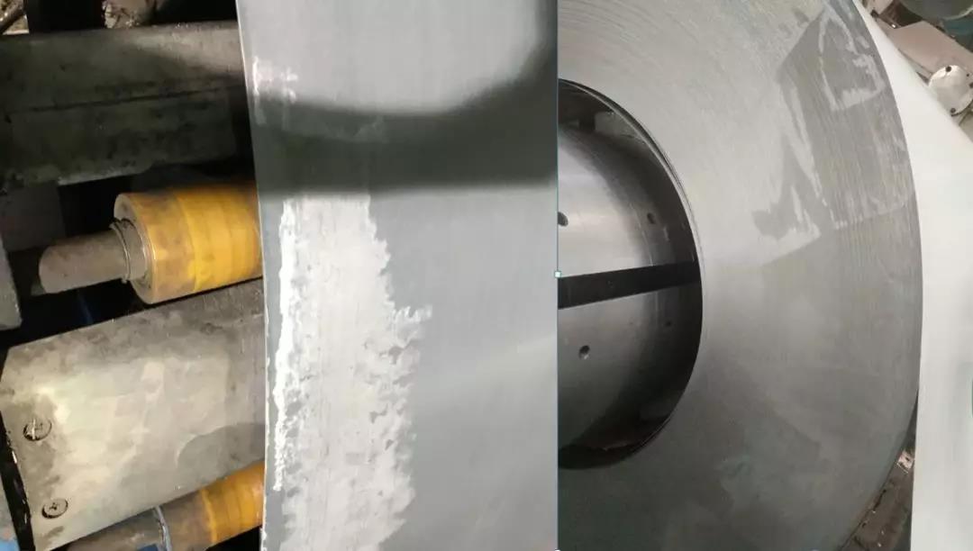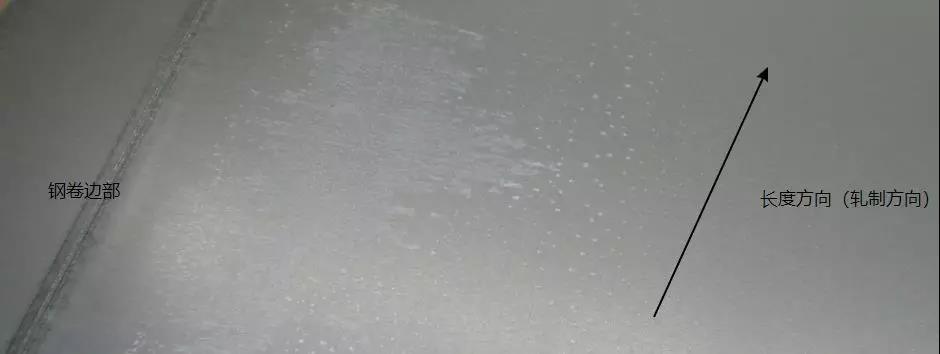 通常儲(chǔ)運(yùn)污染導(dǎo)致的白銹是離邊部有一小段距離,且有明顯的輪廓,在另一端則是輪廓模糊的。