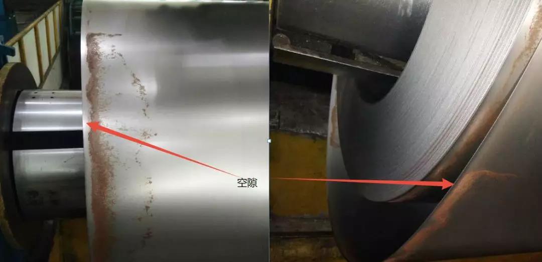 儲(chǔ)運(yùn)污染是指鋼卷/鋼板在打包后遭遇水污染導(dǎo)致的。典型案例如: